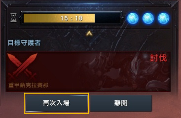 完成守護者討伐戰後,可透過「再次入場」鍵再次挑戰相同的守護者討伐戰。